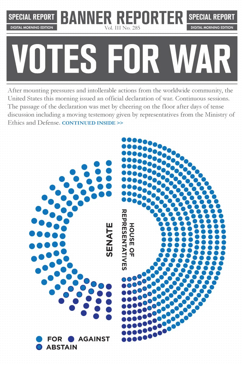 An infographic from a fictional news app showing overwhelming support for war in the world of "Cancer."